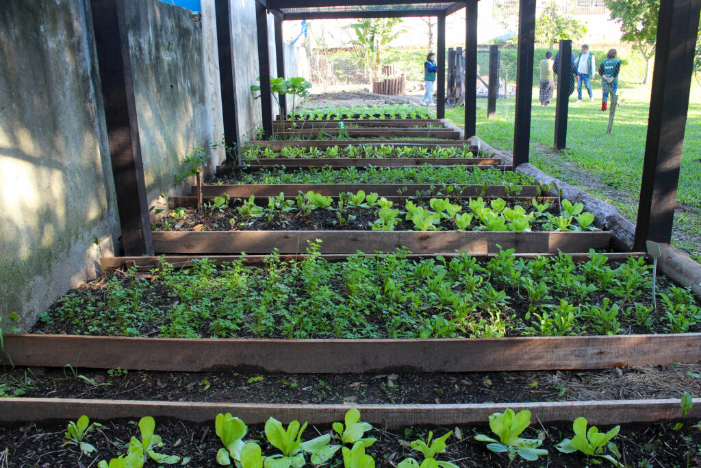 Em maio, foi finalizada a etapa de estrutura (cercamento, divisão das áreas de plantio e cobertura), tendo início o processo de plantio das mudas. Por lá, são cultivadas 8 variedades de hortaliças, como radiche, rúcula e beterraba, além de 12 espécies de temperos e medicinais, como malva, manjericão, alecrim, penicilina, entre outras. Há ainda inúmeras árvores frutíferas e nativas que já existiam e que foram acrescentadas pelo projeto, como a pitangueira, araçá, guabiroba.