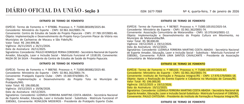 TERMO DE FOMENTO ministério do esporte nº 251/2025